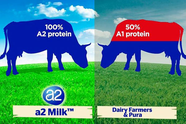 Trong khi hầu hết các thương hiệu sữa bò ngày nay đều chứa hỗn hợp cả Protein A1 và A2 thì dòng sản phẩm A2 được sản xuất từ nguồn sữa đến từ những con bò thuần chủng, được chăn nuôi tự nhiên để chỉ sản xuất protein A2 tự nhiên và không có A1 – Đây là sự khác biệt lớn nhất có trong sữa tươi dạng bột A2 của Úc.