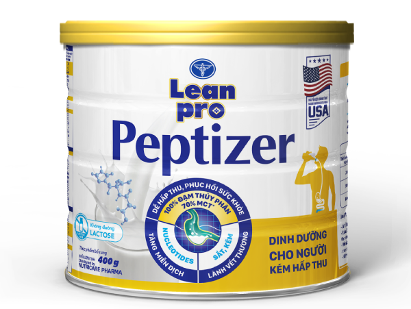 Sữa Leanpro Peptizer dinh dưỡng cho người kém hấp thu, khi hệ tiêu hóa hoạt động kém, một hệ dinh dưỡng dễ hấp thu giúp nuôi dưỡng cơ thể, phục hồi sức khỏe là thật sự cần thiết. Leanpro Peptizer cung cấp năng lượng và Protein cao vượt trội, với thành phần 100% đạm từ Whey thủy phân và 70% chất béo tốt MCT tối ưu hóa hấp thu, cung cấp năng lượng và Protein giúp phục hồi thể trạng, nhanh lành vết thương, tăng cường hệ miễn dịch, hỗ trợ tiêu hóa.