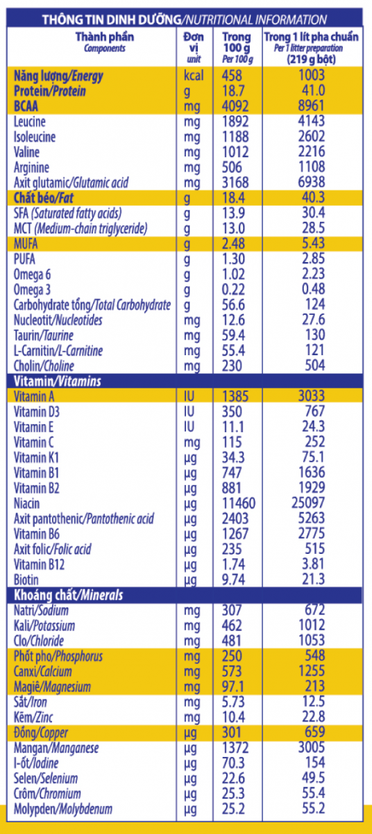 Thành phần dinh dưỡng sữa LeanPro Peptizer