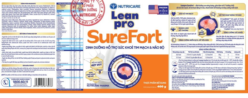 Tên sản phẩm: Sữa Leanpro Surefort Dinh Dưỡng Hỗ Trợ Sức Khỏe Tim Mạch Và Não Bộ