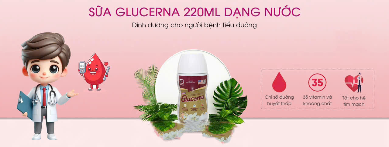 - Chọn Sữa Glucerna nước 220ml là bạn đã chọn đúng sản phẩm sữa tốt nhất hiện nay dành cho bệnh nhân tiểu đường. Sữa được sản xuất tại Hà Lan, nhập khẩu về Việt Nam và phân phối bởi công ty TNHH Dinh dưỡng 3A (Việt Nam).