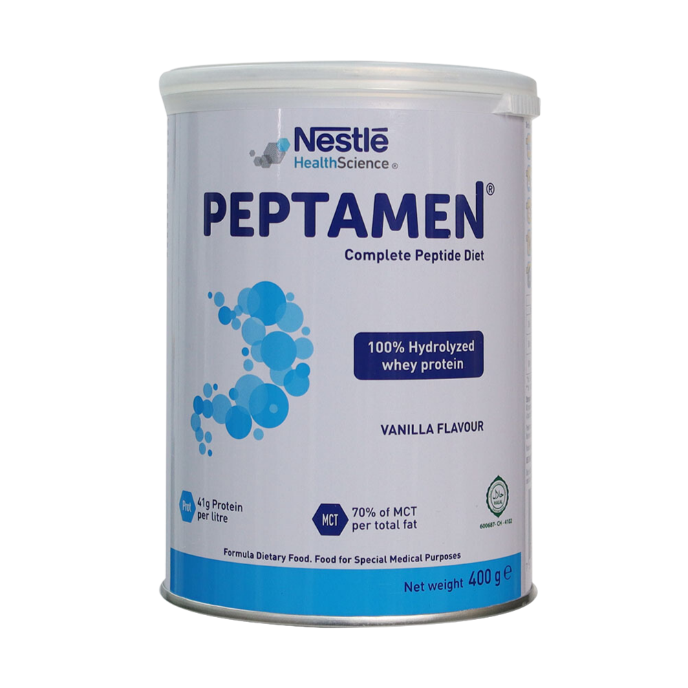 Sữa Peptamen là sản phẩm dinh dưỡng y học chuyên dùng cho người bệnh kém hấp thu, người mắc bệnh ung thư, người phải phẩu thuật, người sụt cân với công thức đặc biệt đến từ Nestle Thụy Sĩ giúp người bệnh dễ hấp thu dinh dưỡng, cung cấp nguồn năng lượng nhanh cho cơ thể để phục hồi và khỏe mạnh. Peptamen là công thức dinh dưỡng có thể thay thế hoàn toàn bữa ăn và có thể ăn qua ống thông hoặc dùng bổ sung cho chế độ ăn hàng ngày. Sản phẩm với công thức chứa đạm whey thủy phân thành Peptides giàu chất béo chuỗi trung bình MCT. Đây là loại đạm có gía trị sinh học cao và đã được chứng minh khoa học về các lợi ích: Tiêu hóa háp thu tốt hơn các loại đạm khác, thúc đẩy quá trình đồng hóa giúp tạo cơ, giúp hỗ trợ chống oxi hóa, bảo vệ tế bào phù hợp với người bệnh ung thư.